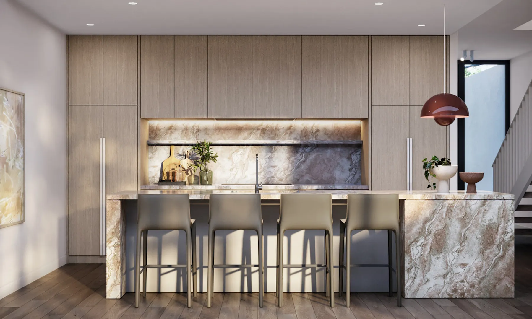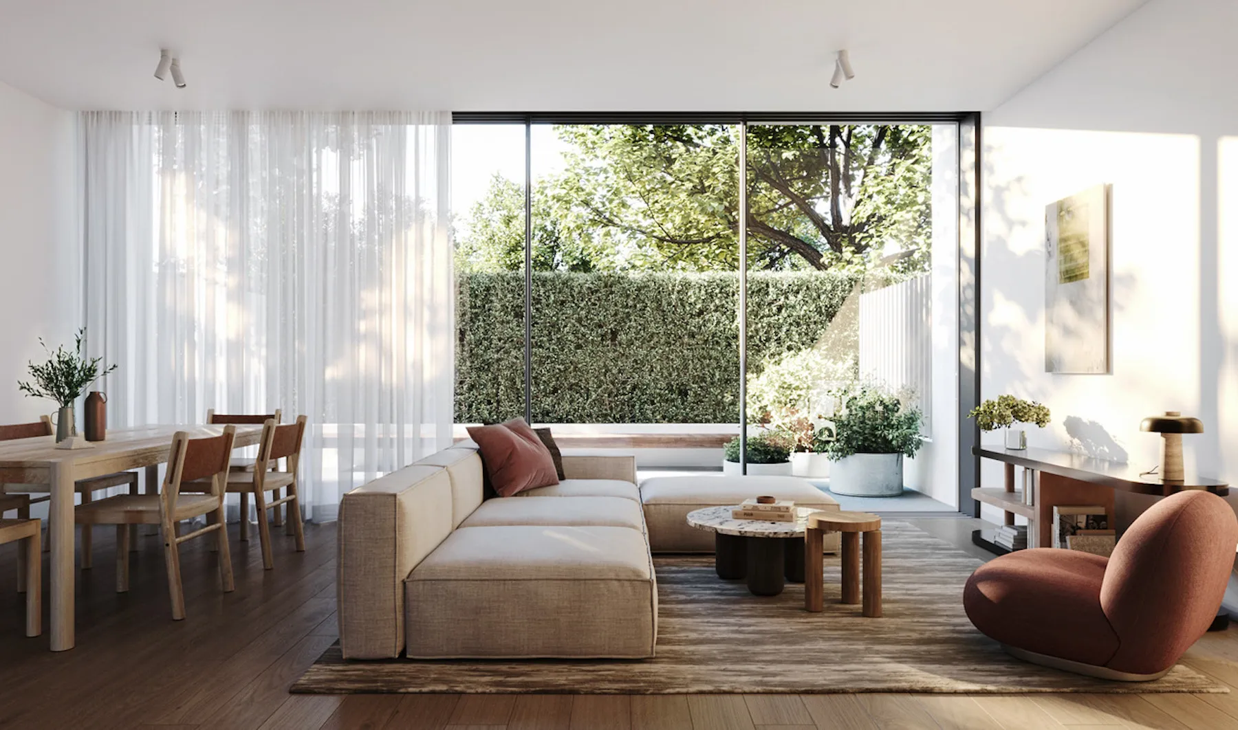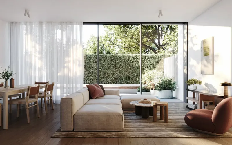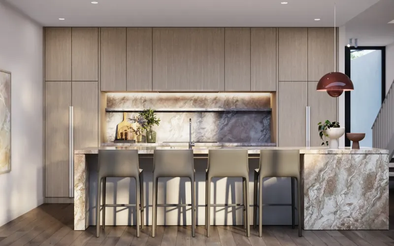 Welcome to Afton; a collection of six townhomes with interiors from the revered Studio Tate, offering four beds, three baths and individually secluded courtyards.