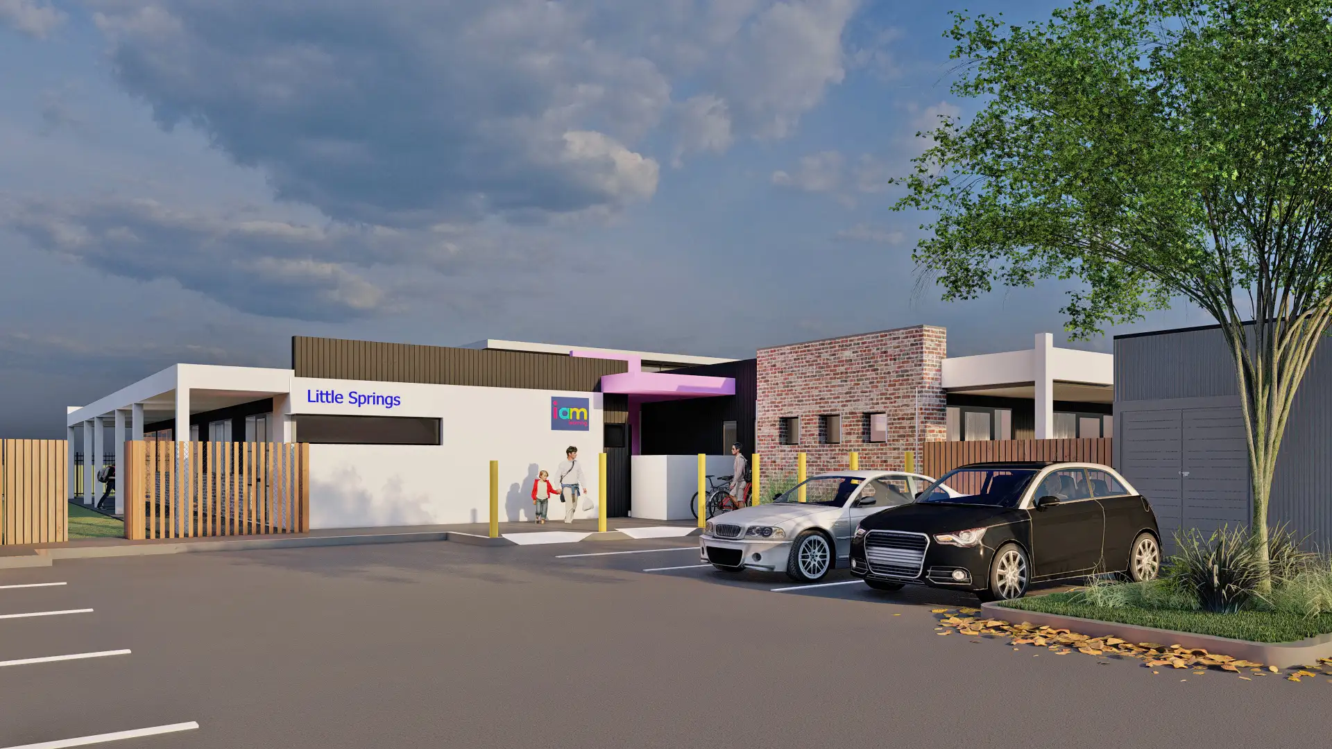 Directly opposite the ELC will be a local park and Little Springs Commercial and Medical Hub which will form the geographical and activity center for this community. The ELC has been designed to address the dual street frontage with all private play areas located at the rear combined into a big open space to facilitate better utilisation of the space alongside visual and physical supervision of the play areas. A swim school has been incorporated within the commercial hub development concept which will provide a complementary service to the ELC, similar to the arrangement at our first I Am Learning ELC in Mernda.